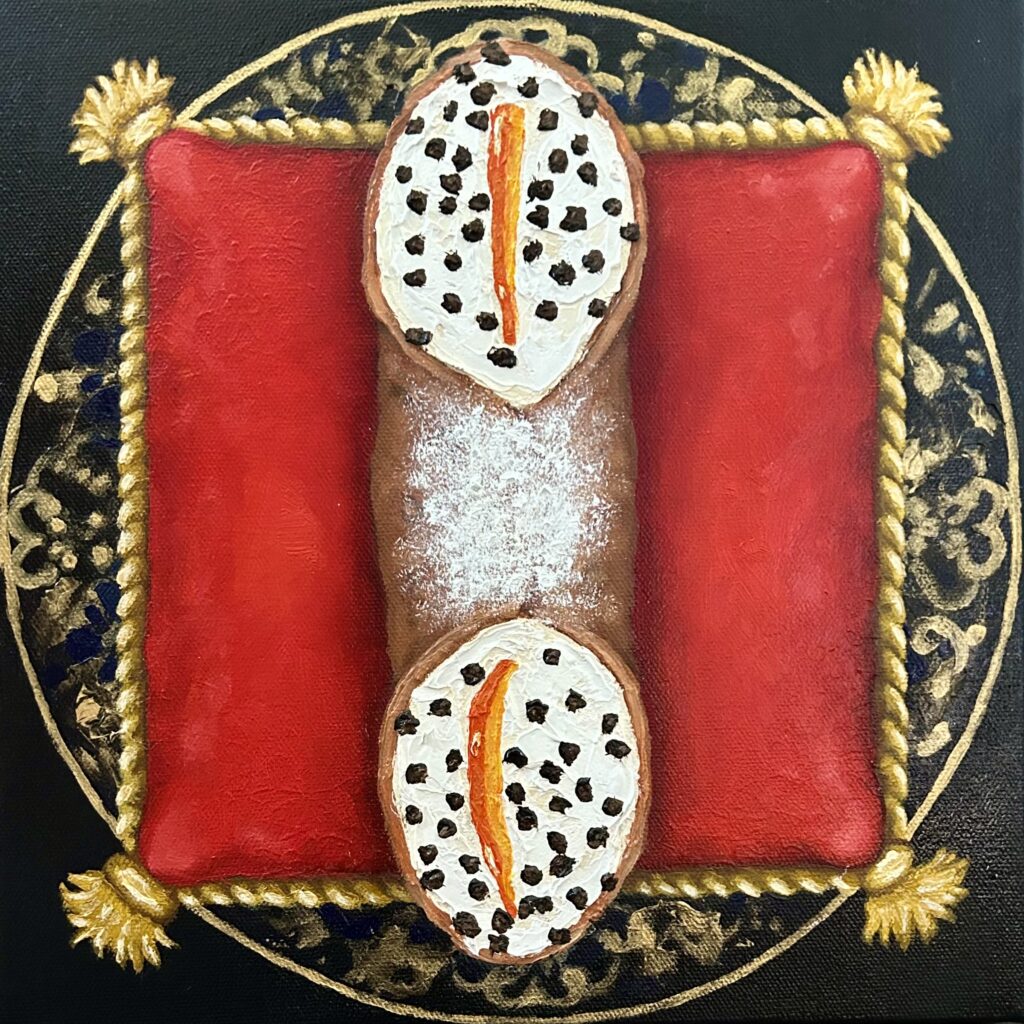 Still Lifes Old Pocket Watch, 12×9 in, oil on canvas board Old coffe grinder, 11×14 in, oil on canvas Old charcoal iron, 12×12 in, oil on canvas Old scissors, 8×10 in, oil on canvas Apples and books, 12×12 in, oil on canvas Apple and avocado, oil on canvas, 8×6 in Still Life with bell peppers, oil on canvas, 11×14 in Make up, 6×8 in, oil on canvas panel Lemon and strawberries, 8×10 in, oil on canvas panel Still life with onions, oil on canvas, 14×11 in. Sold Still life with flour, 14×11 in, oil on canvas panel Sicilia Royalty, Cannolo – the King, oil and acrylic on canvas, 12×12 in Sicilia Royalty, Cassata – the Queen, oil and acrylic on canvas, 12×12